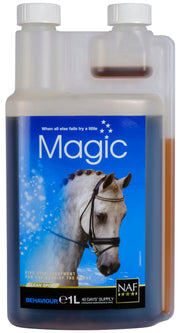 This unique synergistic blend has been independently trialled, with peer-reviewed, published results showing a reduction in inappropriate responses, and an improvement in the horse's cognitive profile, crucially, with no sedation. Feeding: Feed Magic for a calm, relaxed horse and a cool, focused performance. Otherwise, where low magnesium may be indicated due to unnatural diet, regular travel or soil deficiency. Horses & Ponies: Loading rate (3-10 days) 50ml per day Standard Maintenance 25ml per day.