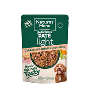 Natures Menu Light Dog Pouch is a complete and balanced wet food specially formulated for overweight, less active, or weight-prone dogs. Made with 60% real meat, including chicken (46%) and rabbit (14%), plus vegetables and rice, this pouch delivers a nutritious, low-fat, and easily digestible meal.