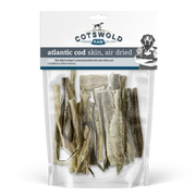 The Cotswold Raw Atlantic Cod Skin is a totally natural, air-dried treat for dogs of all breeds. Rich in protein and naturally low in fat, these crunchy cod skins are perfect as an occasional snack between meals or as a tasty addition to a complete diet. The oily fish content supports healthy skin, coat, and joints, while the natural texture helps promote dental health.