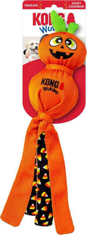 KONG Halloween Wubba Ballistic Dog Toy – Durable Squeaky Tug & Fetch Toy with Floppy Tails – Pumpkin