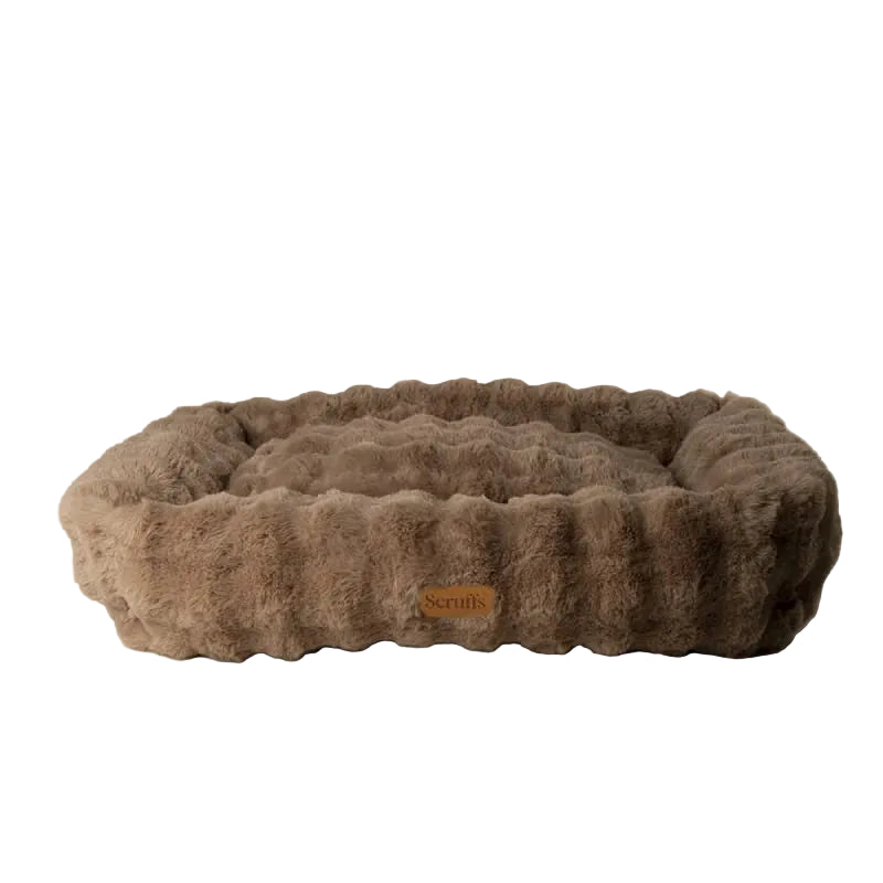 The Scruffs Alpine Box Bed in Taupe combines luxury, comfort, and practicality for your pet. Crafted from thick-cut faux fur, this bed features deep-filled walls and a generously padded sleeping area, all stuffed with 100% recycled polypropylene fill for ultimate softness and cosiness while keeping out draughts and chills. Its bolstered side walls provide support for your pet’s head and body, making it ideal for pets who love to curl up or sprawl out.