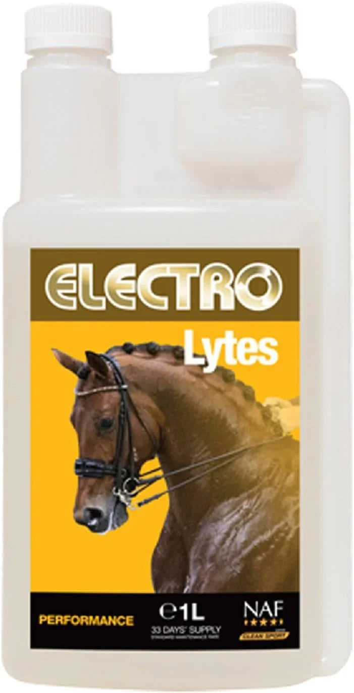 NAF Liquid Electro Lytes is an easy to use liquid designed to replace the four essential body salts which may be lost through exercise, sweating or during hot weather. Simply add to feed or dissolve in drinking water. Always ensure a supply of clean fresh water is readily available.