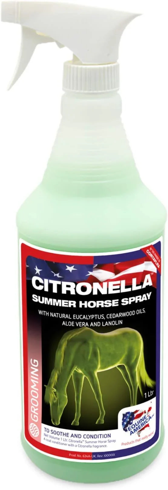 Equine America Citronella Summer Horse Spray is a premium natural grooming spray designed to keep horses and ponies comfortable during the warmer months. Formulated with citronella, lanolin, and aloe vera, this spray helps repel flies and insects while conditioning the coat and skin. The result is a healthy, shiny coat with a pleasant citronella fragrance.
