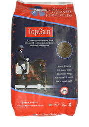 Simple System Top Gain is a highly palatable, concentrated top-up feed designed to support weight gain, condition, and overall health in horses and ponies. Ideal for hard keepers, older horses, or those requiring additional calories to maintain or improve condition, Top Gain complements forage and balancer feeds.
