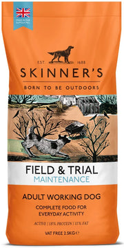 Skinner's Field & Trial Maintenance is a complete dry food specially formulated for adult working dogs with lower activity levels or those in light work. Made with the natural goodness of British chicken and wholesome ingredients, it provides balanced nutrition to maintain condition, support stamina, and promote long-term health.