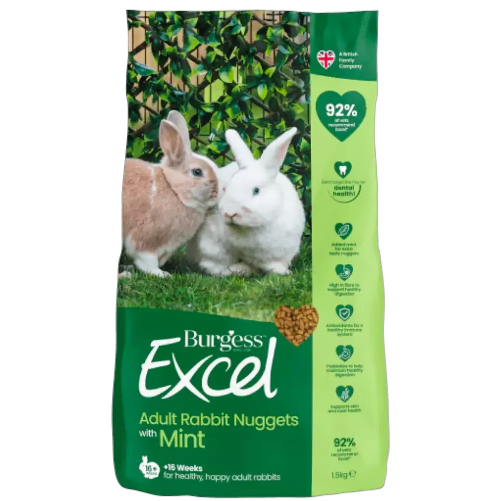 Burgess Excel Rabbit Food – Adult Nuggets with Mint 16+ Weeks 1.5kg