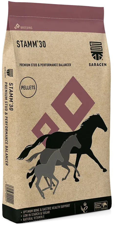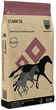 Saracen Stamm 30 is a highly concentrated stud and performance horse balancer designed to provide premium-quality protein, vitamins, minerals, and antioxidants. It is formulated to support breeding horses, youngstock, and performance horses by delivering essential nutrients without excess calories or starch.