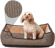DOGGY STYLE Medium Dog Bed – Luxury Snuggler in Houndstooth Tan (22cm x 60cm x 80cm)